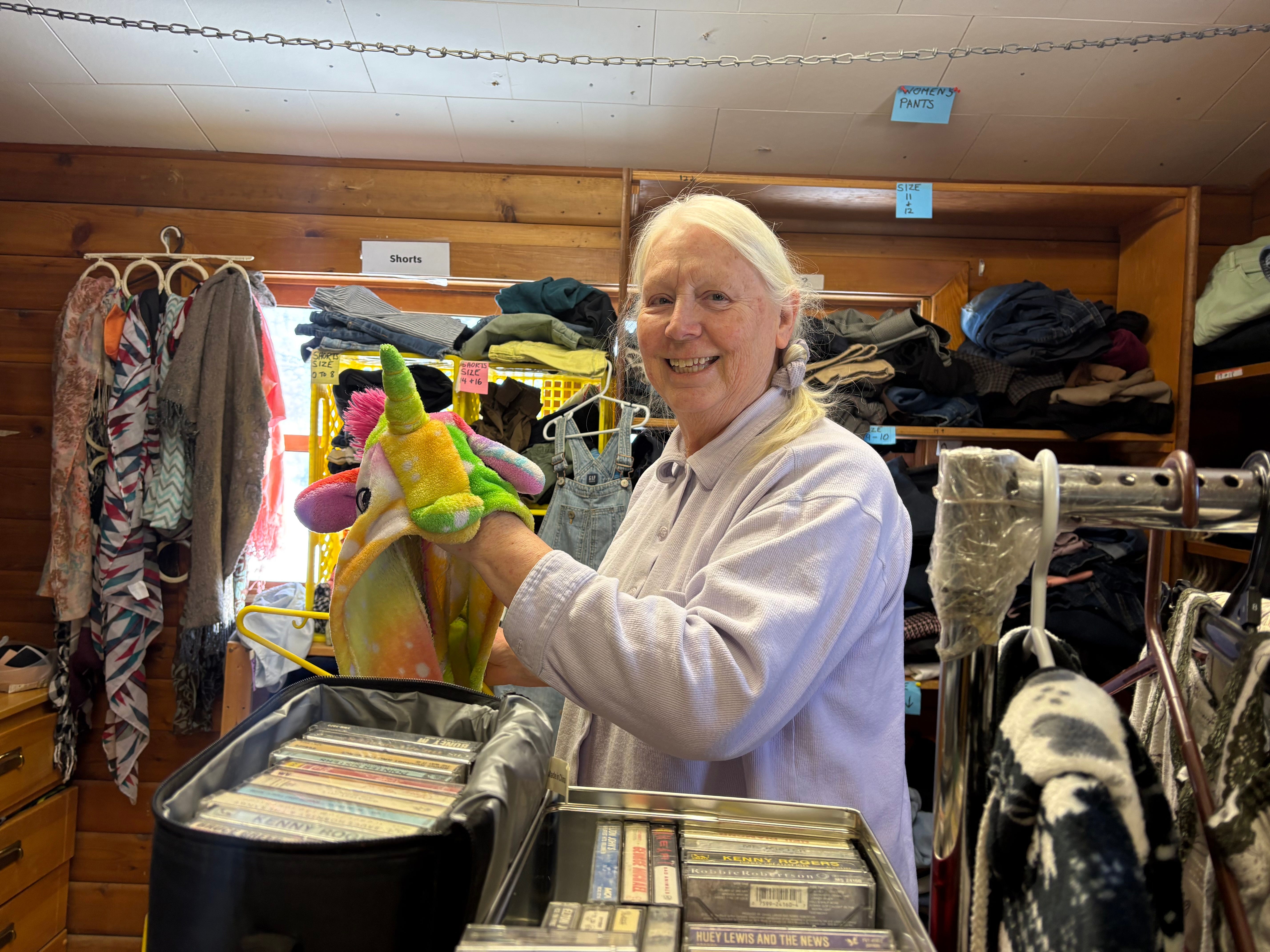 The store has been running, in one form or another, since the 1940s. My aunt, Evelyn McDonald (pictured), has been involved since about the 1980s. The revenues from it fund a community dinner they serve every Wednesday (also cooked by Aunt Evelyn!) which is open to everyone from town. The food’s amazing, and you’re sure to meet interesting people.